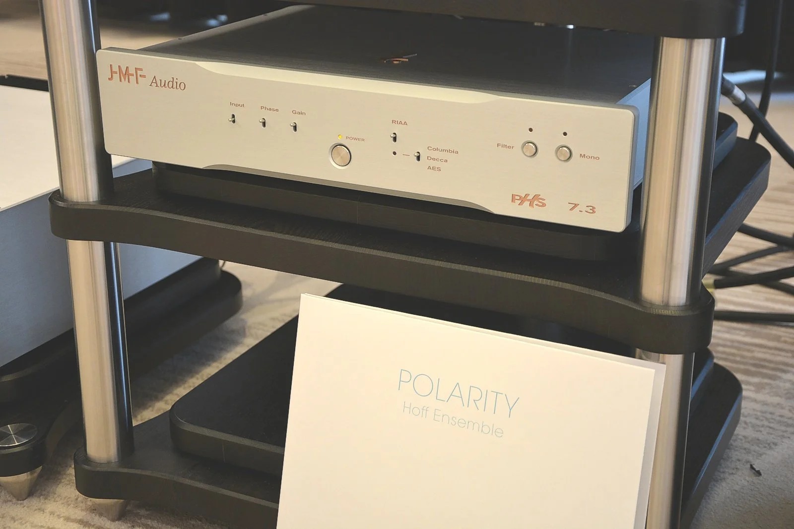 POLARITY, the first vinyl record ever recorded with the JMF Audio PCD 302 power line filter, by GRAMMY nominated pianist Jan Gunnar Hoff’s ensemble, produced by Morten Lindberg for 2L in Norway, the pre-release sample demonstrated for the first time in Munich. Played through the JMF Audio PHS 7.3 phono pre-amplifier.